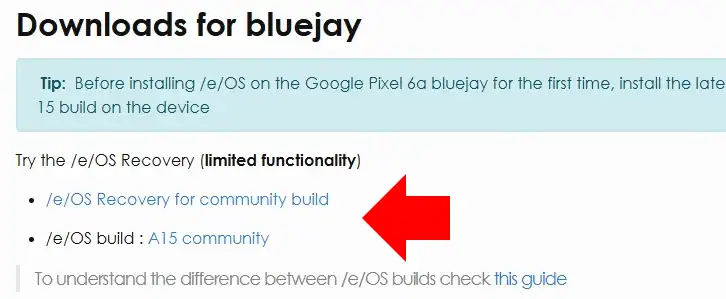 ✏️ /e/OSのROMパッケージとリカバリーイメージは同一のダウンロードページに掲載されているため、どちらのリンクから遷移しても同じページが表示されます。