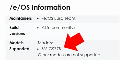 本ガイドに掲載しているスクリーンショットは SM-G977N で取得したものですが、/e/OS が公式にサポートしているのは SM-G977B です。サポート外のモデルにインストールできる場合もありますが、動作保証やアップデート保証はありません。